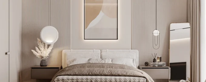 Η ενότητα των χρωμάτων είναι το κλειδί για την οπτική επέκταση. Όταν η παλέτα είναι αρμονική, το μάτι δεν σπάει σε λεπτομέρειες, αλλά γλιστράει ελεύθερα μέσα στο χώρο. Δοκιμάστε τη μονοχρωμία ή έναν συνδυασμό το πολύ τριών κοντινών αποχρώσεων, όπως το μπεζ, το λευκό και το ζεστό γκρι. Αυτό θα κάνει την κρεβατοκάμαρα να αισθάνεται ήρεμη και “ολόκληρη”.