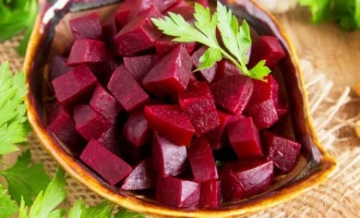 - Ψητά παντζάρια. Προσπαθήστε να μην τηγανίσετε το λαχανικό, αλλά ψήστε το στο φούρνο ή στη σχάρα. Η γεύση του πιάτου θα γίνει πολύ πιο πλούσια.