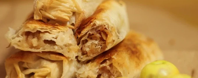 Πρόκειται για ένα γευστικό, γλυκό γλυκό με τραγανή κρούστα και ζουμερή γέμιση μήλου με κανέλα